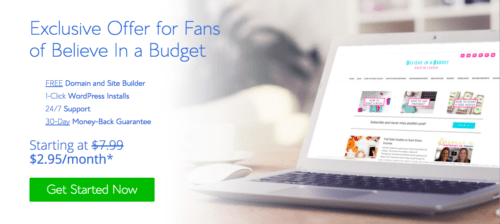 This was the very first investment I made in myself as a new blogger. I was able to get hosting and my free domain name for around $100! Three years later, I still use Bluehost to run Believe In A Budget.